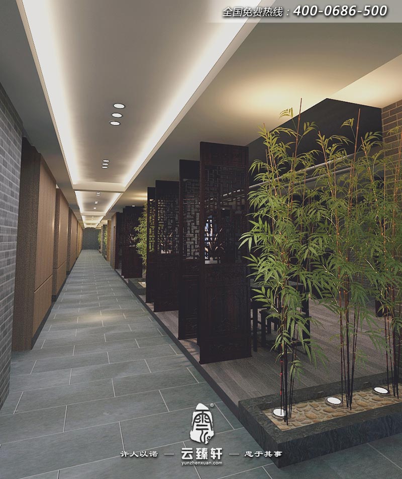 貴賓包房內更是將茶道的氛圍推向極致。傳統的雀替配飾在仿古的青磚上,質樸的地毯與中式家具相得益彰,青花瓷的藝術品與裝飾畫一起,勾勒出中式風格的經典韻味